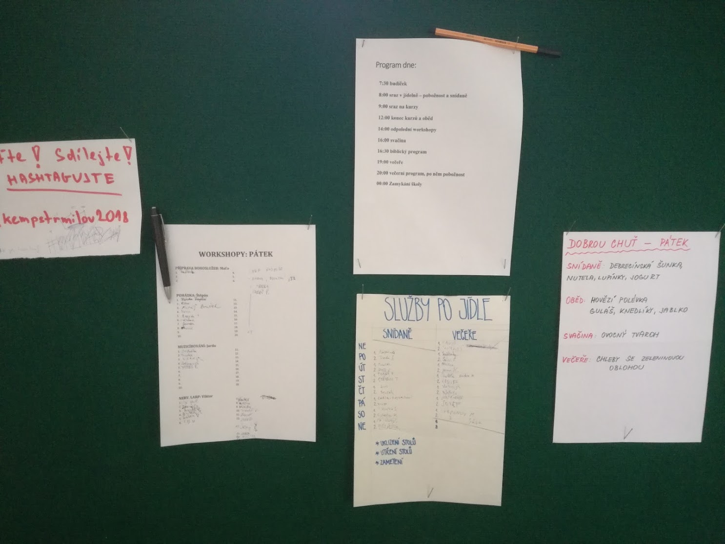 Večerka je na uvážení účastníků, ale předpokládáme ohleduplnost k těm,. co chtějí spát i to, že se ráno všichni sejdeme u snídaně.